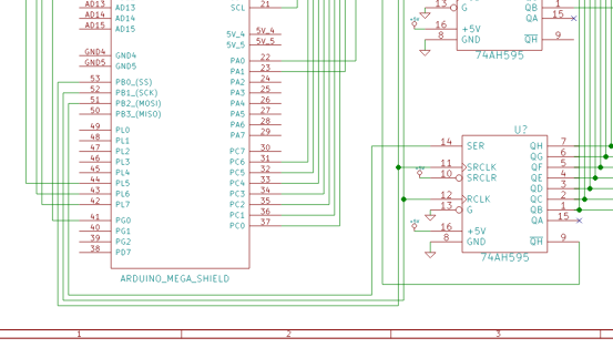This project continues with the design used in previous experiments. Each signalex digit requires about 120mA at 12v to flip, which is provided on 14 wires by a pair of MIC5801BN current drivers. There are six digits, requiring a total of twelve mic5801bn driver chips. The driver chips have latched input. This means that they read and store the logic levels of the input lines when the STROBE pin transitions from LOW to HIGH. This means that we can use just the two 74hc595 chips from the original design and wire their fourteen output pins to the input pins of every digit. I will call these fourteen wires the data bus. By controlling the STROBE pins independently, we instruct individual digits to read the data bus.