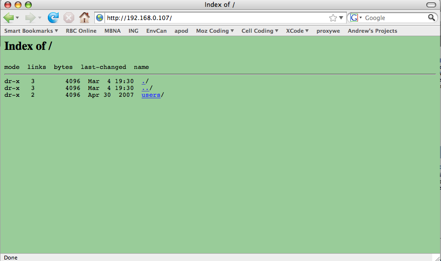 My server's local IP address is 192.168.0.107. I will assume that you have another workstation running on your local network. Go to your workstation and aim the browser at http://192.168.0.107. You should see something like this: