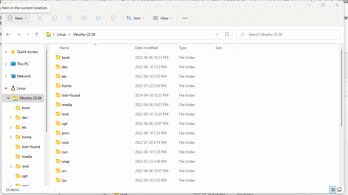 If we browse to that folder using File Explorer in the win11 GUI then we can see the files from windows.