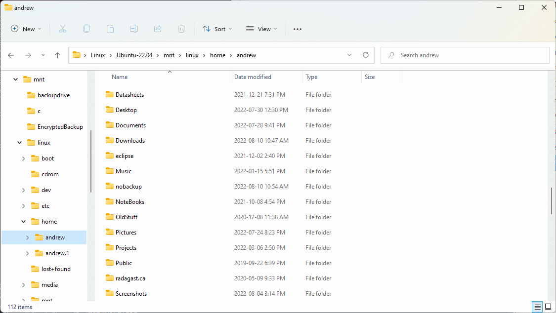 One of the really interesting things about Win11/WSL2 is that the Linux installation shows up in File Explorer. See image below. This implies that windows has a built in ext4 driver and that linux partitions can be mounted and viewed in Win11.